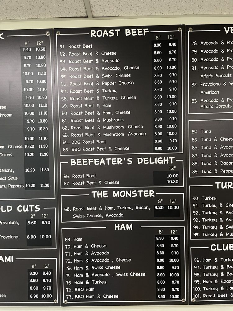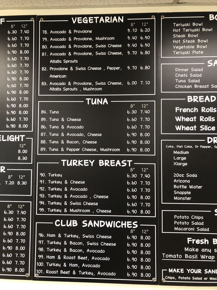 Ham, roast beef, avocadoAichoice of bread including wheat, wraps, rolls, rye, sourdough. Sizes: inch, inch, or wrap separate.